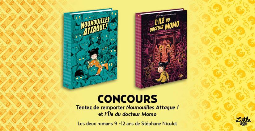 Les Éditions Little Urban et kidiklik vous offrent la série de romans pour les 9-12 ans de Stéphane Nicolet, à l'occasion de la sortie du roman L'Ile du Docteur Momo, une aventure semi-horrifique et 100% comique qui prend place dans le même univers que Nounouilles Attaque !